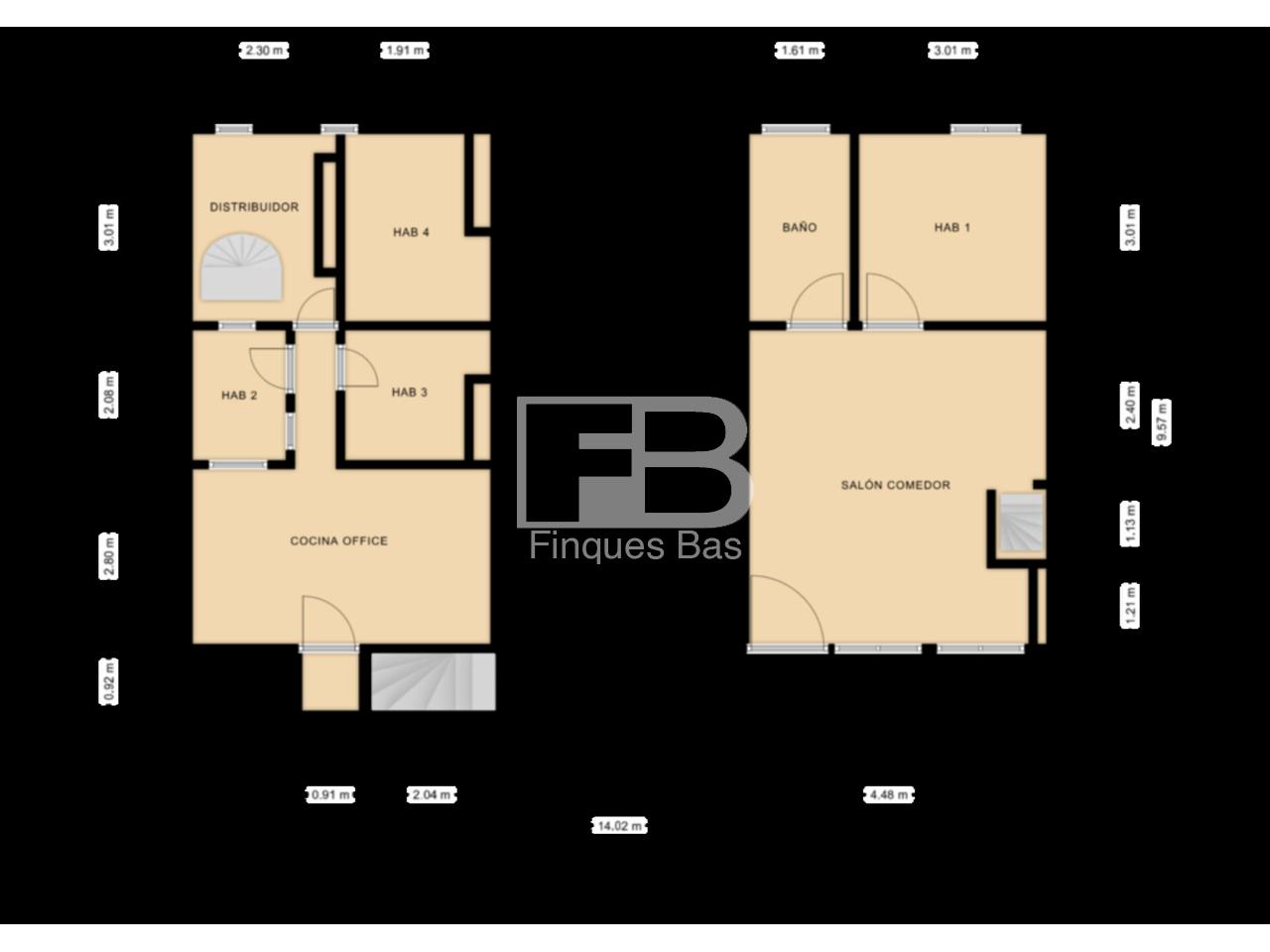 Distribuida en 2 plantas, planta calle de 41m2 útiles, con amplio salón, con escaleras de caracol acceso a planta baja, baño completo exterior y habitación doble exterior. En la planta baja de 39m2 útiles tiene un amplio distribuidor, 3 dormitorios individuales, pasillo y cocina independiente muy amplia, con salida a jardín, con pequeño espacio trastero para leña o lo que se quiera.